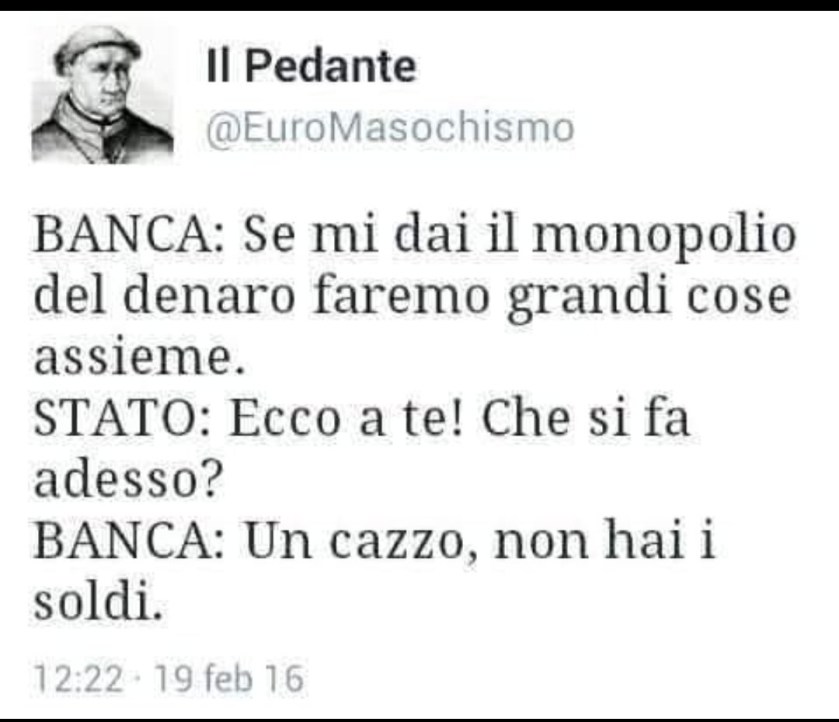 Post di Stefano sui bitcoin che è anche una riflessione sulla moneta in generale. Per me la moneta, in un’economia di mercato, è una merce come un’altra. Il suo valore lo decide appunto il mercato, cioè la richiesta di beni materiali o finanziari in quella determinata valuta. Per questo è importante che ogni stato abbia la sua moneta, perché ogni stato ha una sua economia tarata sulla sua produzione di beni e la moneta è come una divisa, deve calzare bene altrimenti sono guai. Guai che abbiamo sperimentato con l’euro, moneta /divisa unica che mette insieme stati diversi creando problemi enormi che si scaricano sul lavoro, sempre più precario e sottopagato! In pratica l’euro tutela solo i padroni, garantendo le rendite e comprimendo i salari. Ora la domanda è : il bitcoin CHI tutela? Stefano prova a dire la sua in questo post:->>