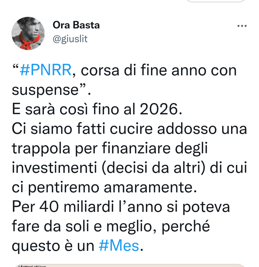 Ricapitolando: il debito pubblico è brutto e cattivo. Infatti nonostante nel 2021 abbiamo avuto tassi d’interesse all’1% il governo dei migliori si è guardato bene dall’approfittarne spianando così la strada per MES e simili (leggasi PNRR che è un MES travestito da agnello)!