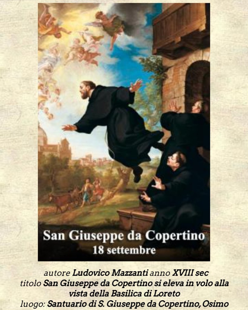 Patrono di Osimo e protettore degli studenti. Nato il 17 giugno 1603 a Copertino (Lecce), morto il 18 settembre 1663 ad Osimo (Ancona). Potete leggere notizie sulla vita del santo e sul santuario a lui dedicato quihttps://sangiuseppedacopertino.net/