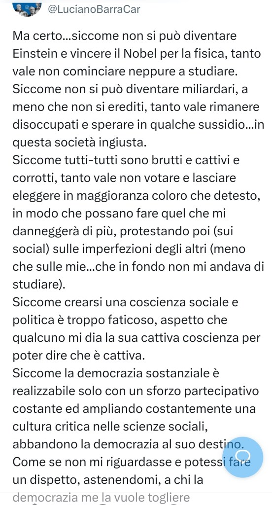 ad aggiungere al 10% dei già svegli, e questi ormai, per il potere, sono persi per