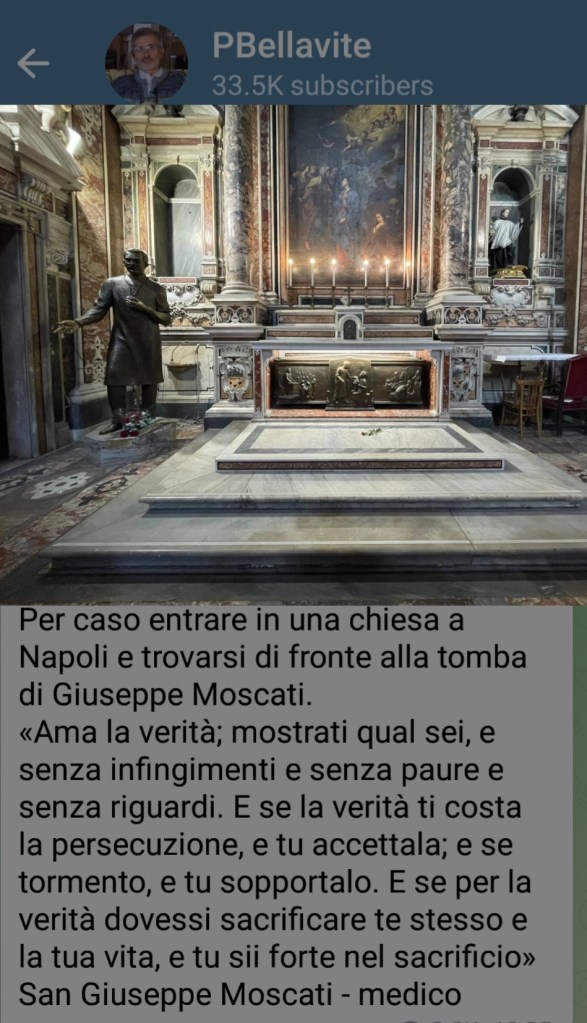 Ho preso spunto dalla foto e dalle parole citate dal professore Paolo Bellavite per ricordare brevemente questo incredibile personaggio. Dobbiamo ripartire da chi ha fatto un esempio per gli altri della propria vita. Le parole che incorniciano la foto all’inizio del post sono più attuali che mai e fanno riflettere. Viviamo così assuefatti dalla menzogna che non riusciamo più a distinguere il bene dal male, eppure… Cliccando sul link sopra potrete leggere la descrizione completa sul sito Vatican va di cui io ho fatto un riassunto.