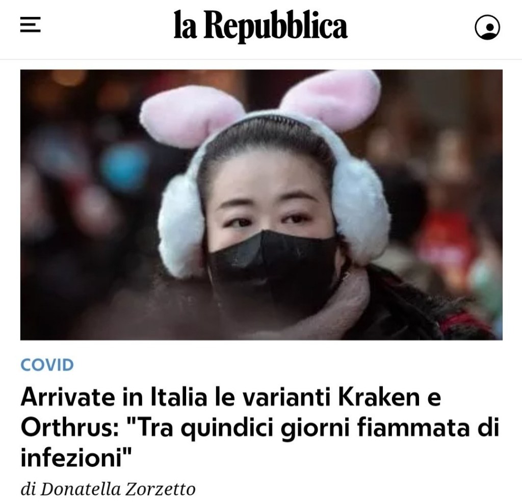 Mamma mia che paura! Davvero terrificante! Poi però capisco tutto: tra quindici giorni è carnevale e i buffoni di regime finalmente possono unire l’utile (dis-informare) al dilettevole (traverstirsi da giornalisti, virologi, esperti de Lascienza…).